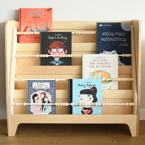 Montessori Bookcase Wooden Bookshelf With Back Storage Etsy
